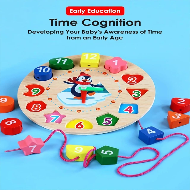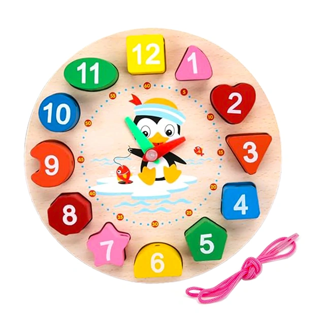 - Colorful wooden clock with 12 removable pieces. The pieces making up each number of the clock are solid pieces and she can firmly hold them.