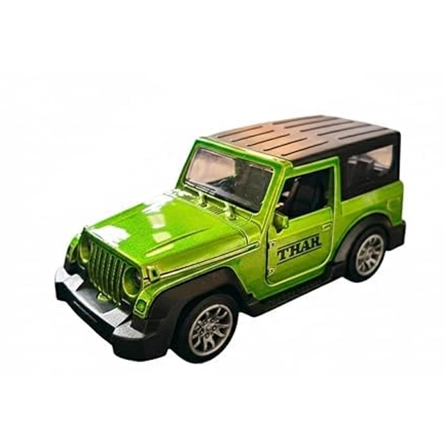 • OPENABLE DOORS & DETAILED INTERIOR: Both side doors of the Thar car toy open to reveal a realistic interior, including the dashboard and seats. This Thar jeep toy car is crafted to replicate a Mahindra Thar toy car with meticulous attention to detail, enhancing the play experience for kids aged 5 to 10 years.