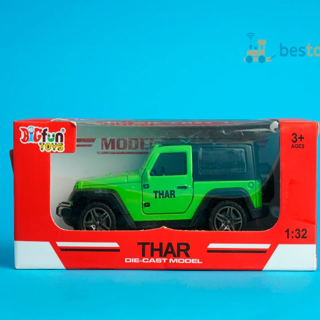 • DURABLE METAL BUILD WITH ALLOY BODY: Made from high-quality die-cast metal, this Thar car toy 4×4 Mahindra features a durable alloy body with rubber tires. Whether you’re playing with it or displaying it, this black Thar car toy is built to withstand rough play while maintaining its sleek appearance.