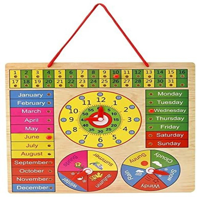 - All-in-One Learning Board Helps children learn time, date, days, months, seasons & weather in one interactive wooden board. Perfect early learning educational toy.