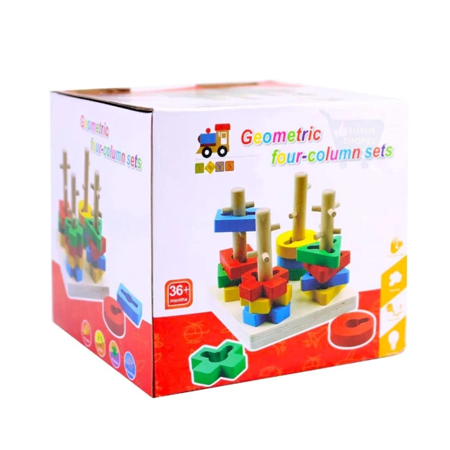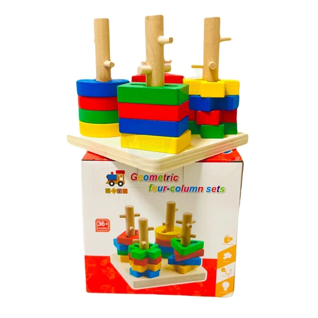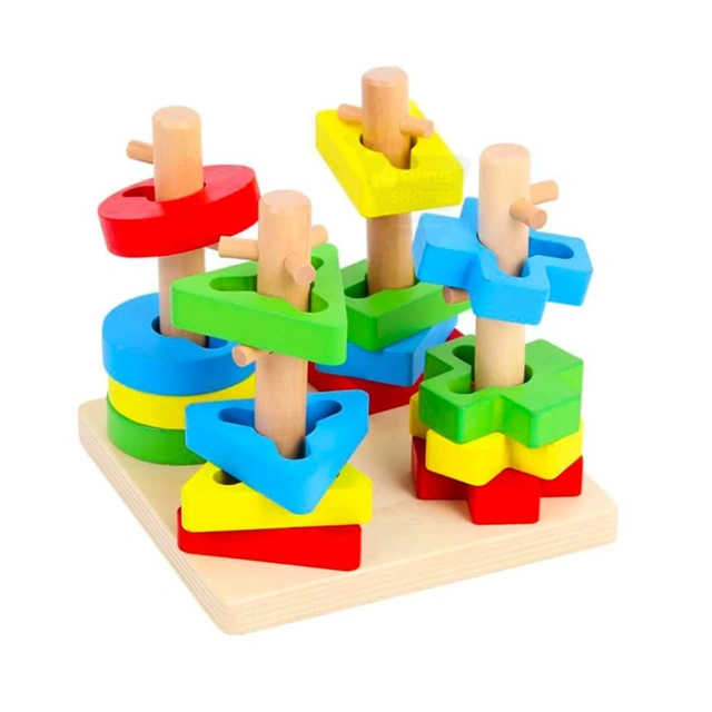 - Stacking and matching puzzle toy that promotes shape recognition and problem-solving skills